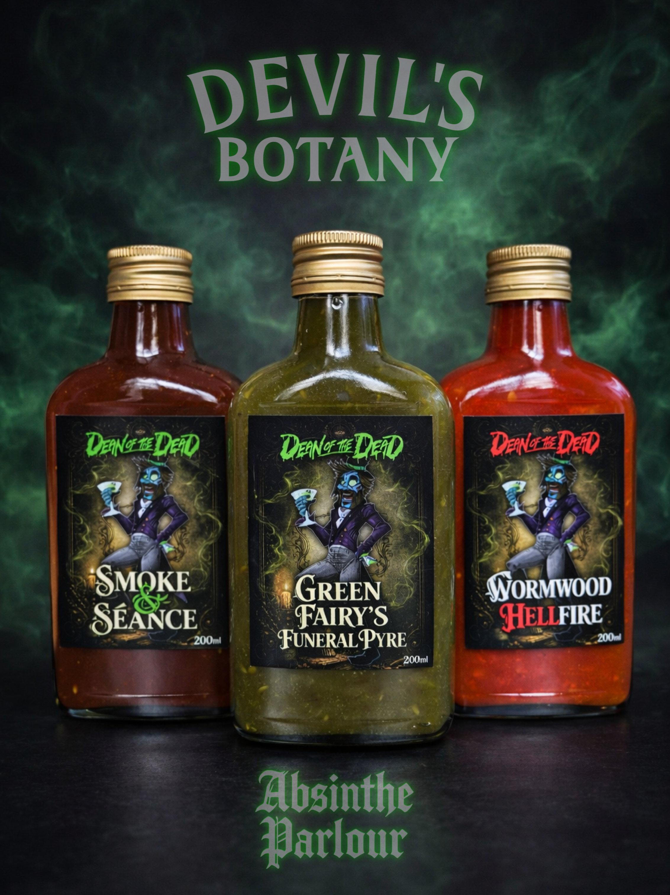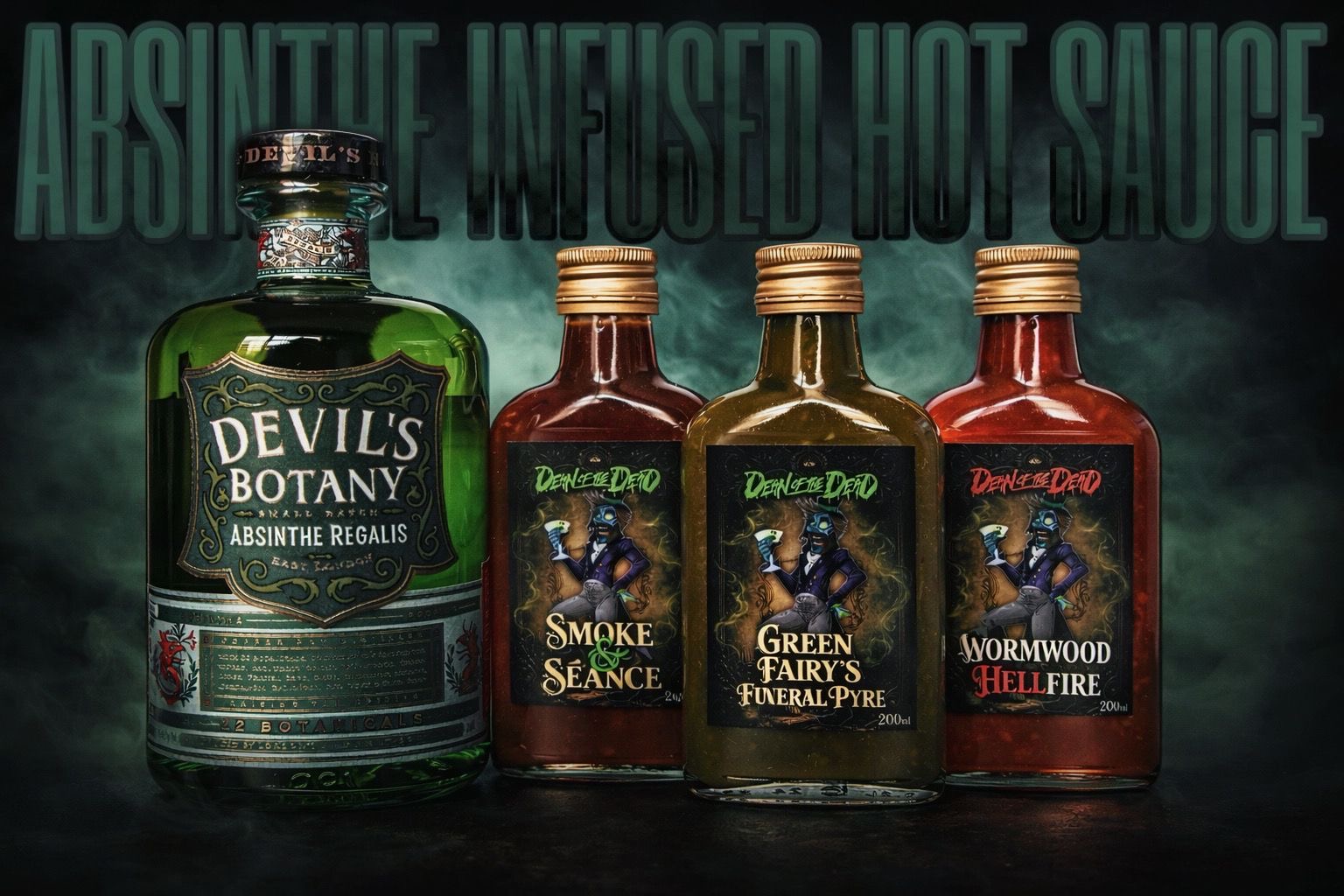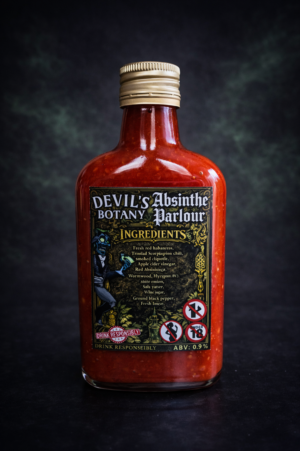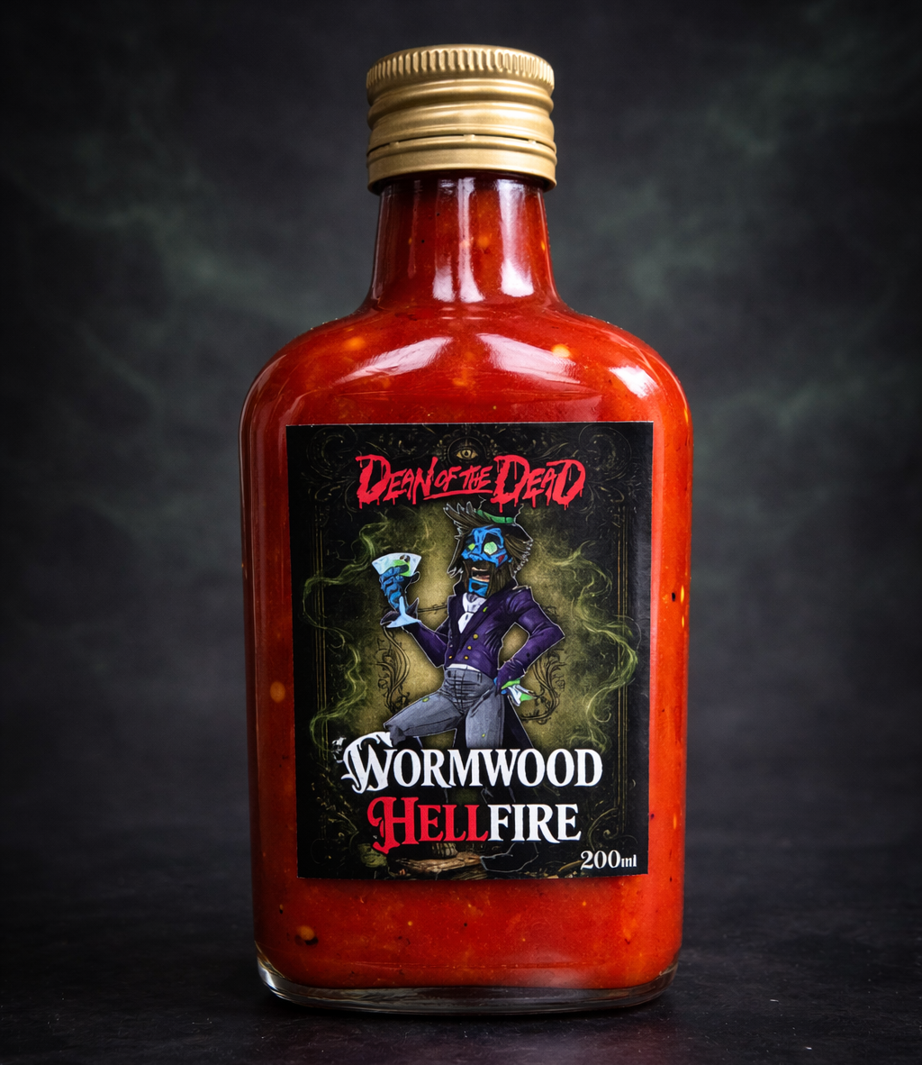 This infernal hot sauce fuses the brutal sting of scorpion peppers with the haunting herbal bite of absinthe, drawing deep inspiration from the bitter botanicals of wormwood itself. The result is a wickedly complex sauce that opens with sharp, aromatic anise and herbal notes before unleashing a blazing wave of searing heat.