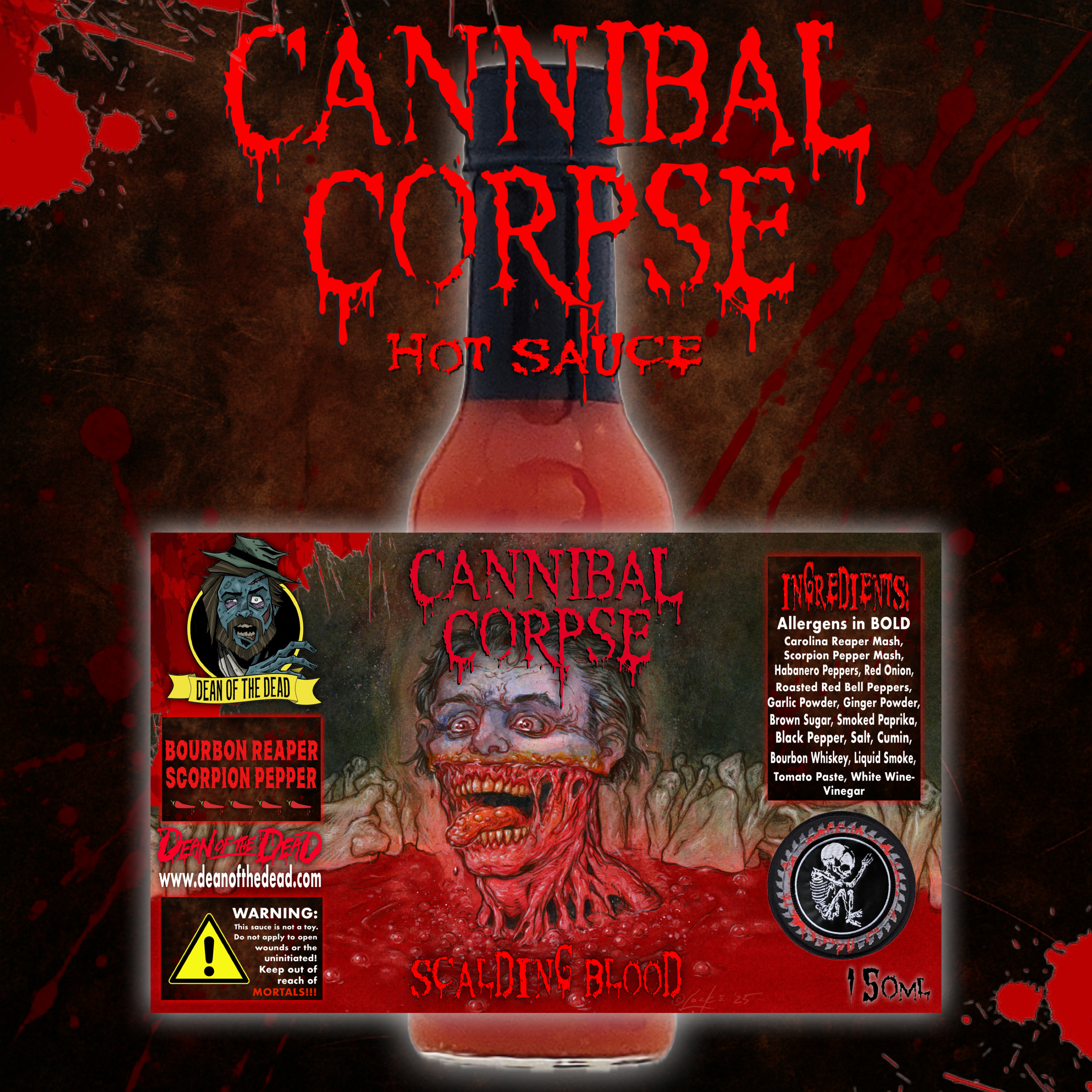 The OFFICIAL Cannibal Corpse hot sauce is loose in the wild – and it’s dripping, screaming, and burning its way into your flesh right f’king now at www.deanofthedead.com.